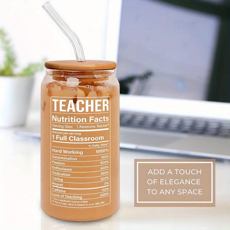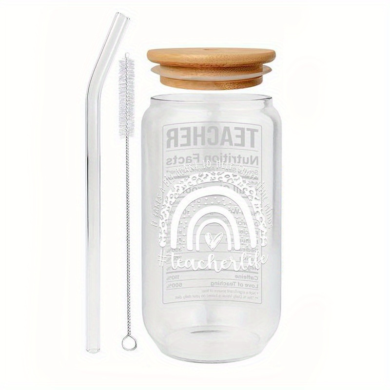 1pc, Letter Printed Water Cup With Lid And Straw, Portable Glass Cup, Teacher Gift For Women, Birthday Gift