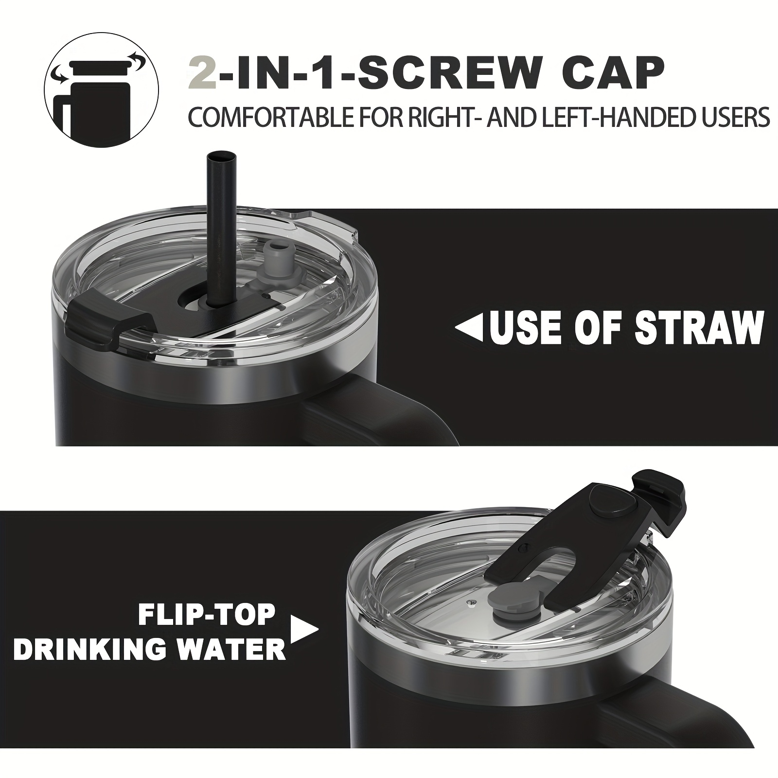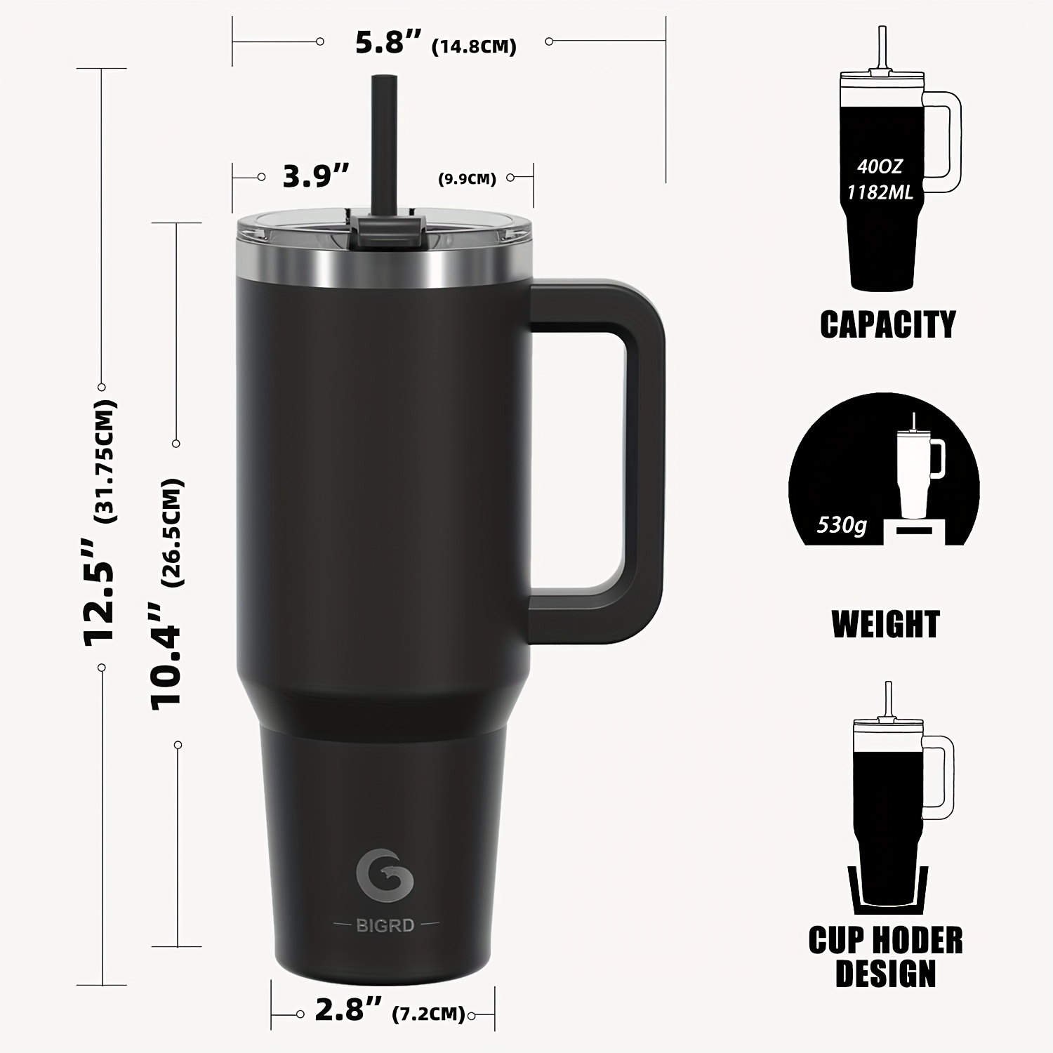 BIGRD • 40oz\u002F1182ml Stainless Steel Water Flask • Double-Wall Vacuum Insulated Leakproof • Hot\u002FCold Car Cup with Straw & Handle • Anti-Slip Base & Dual Silicone Mouthpiece • for Travel, Gym, Dish