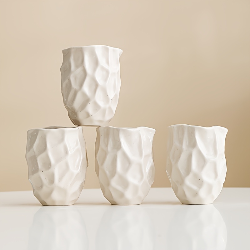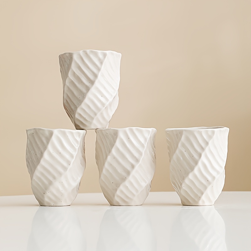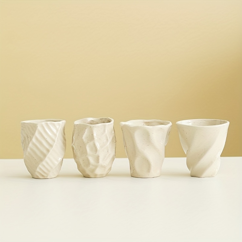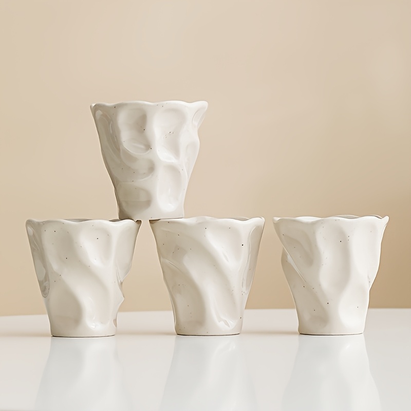 Creative Ceramic Coffee Cups 4pcs Hand-Thrown Ceramic Coffee Cups Set | Pink\u002FCream White, Creative Ruffled Mugs, Espresso, Latte Art, Milk, Water, Tea Cups - Beautiful & Practical for Brewing Coffee, Cappuccino, Latte